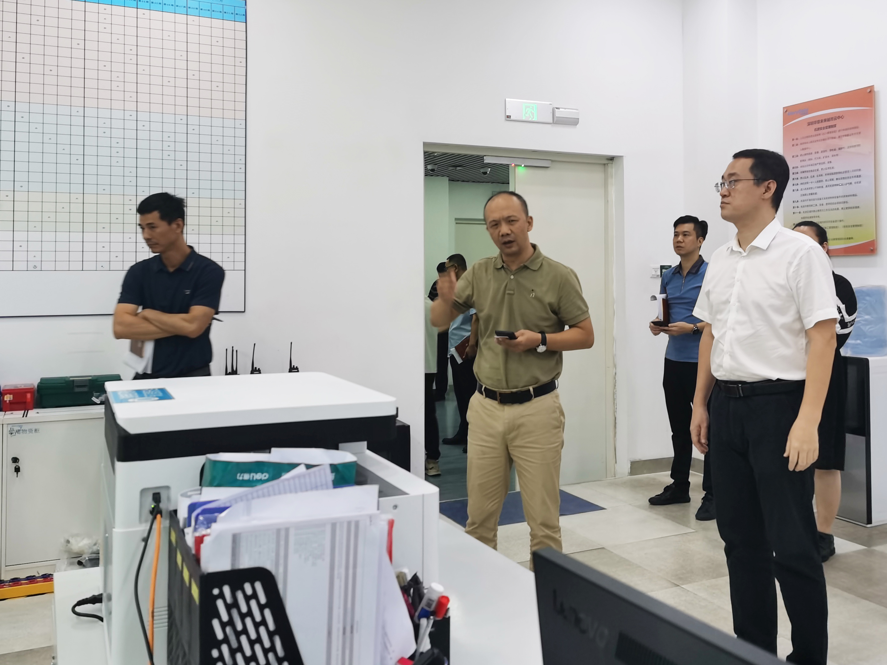 15日上午,在深圳未來城市云數(shù)據(jù)中心項(xiàng)目管理公司副總經(jīng)理曾行的帶領(lǐng)下,李宏濤書記一行參觀了數(shù)據(jù)中心核心業(yè)務(wù)機(jī)房,實(shí)地考察數(shù)據(jù)中心安全生產(chǎn)和平穩(wěn)運(yùn)行,仔細(xì)查看了機(jī)房設(shè)施設(shè)備、人員值班值守、安全施工、防汛保障等情況后,對深圳未來城市云中心安全可靠的運(yùn)營管理和保障措施表示肯定。